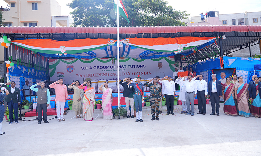 As is customary, S.E.A Group of Institutions observed Independence Day on August 15th, 2025 in the S.E.A campus. The entire Group of Institutions actively participated in the march past as well as various cultural programmes .